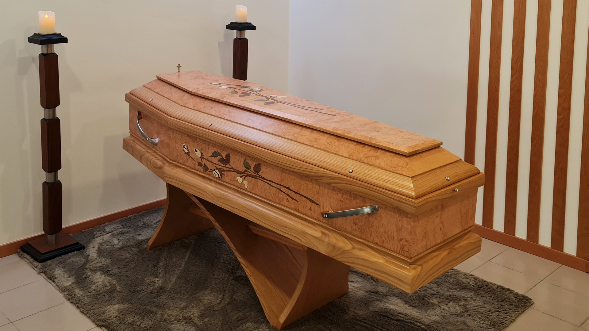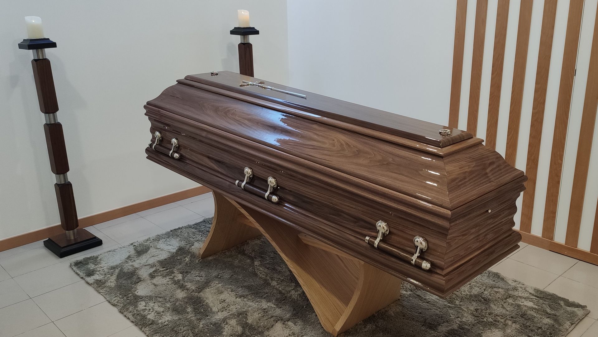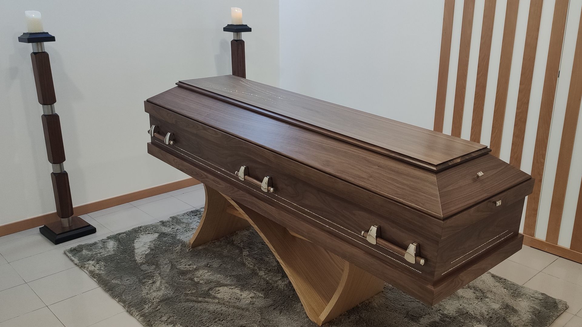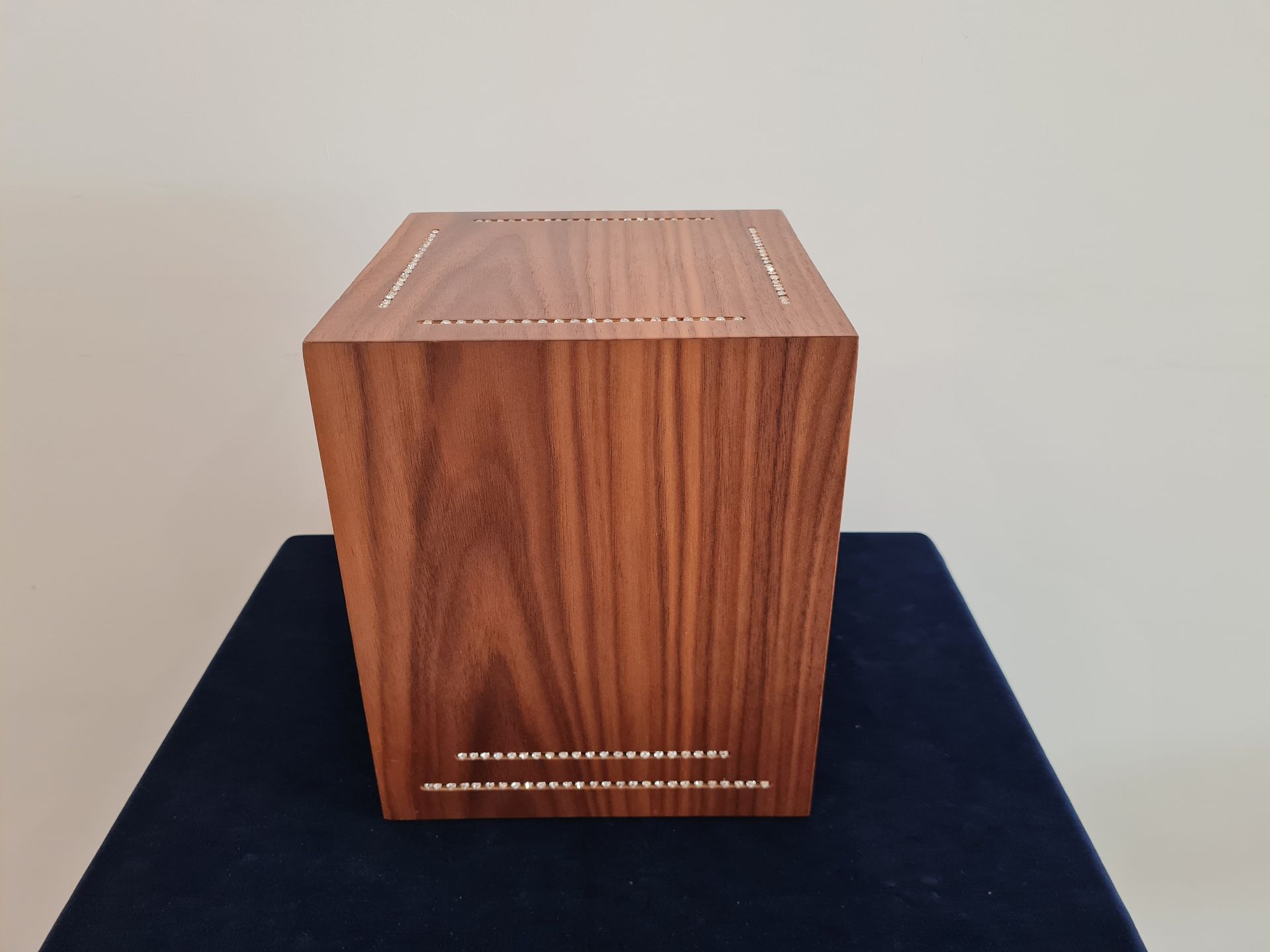 Características gerais: Urna laminada a nogueira revestida com diamantes.